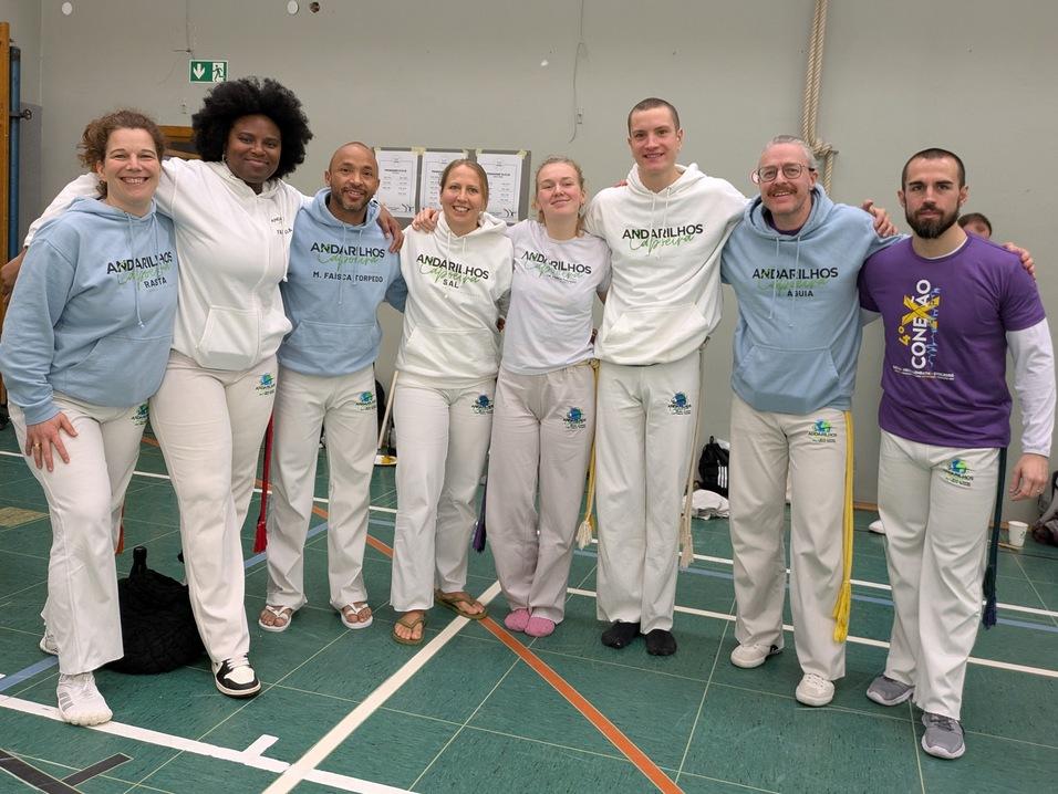 Andarilhos bedeutet „Wanderer" – und wie der Name schon sagt, sind wir viel unterwegs und besuchen regelmäßig Events von anderen Gruppen in der Nähe und Ferne. Der Austausch mit anderen Capoeiristas liegt uns dabei besonders am Herzen und ist immer wieder bereichernd.