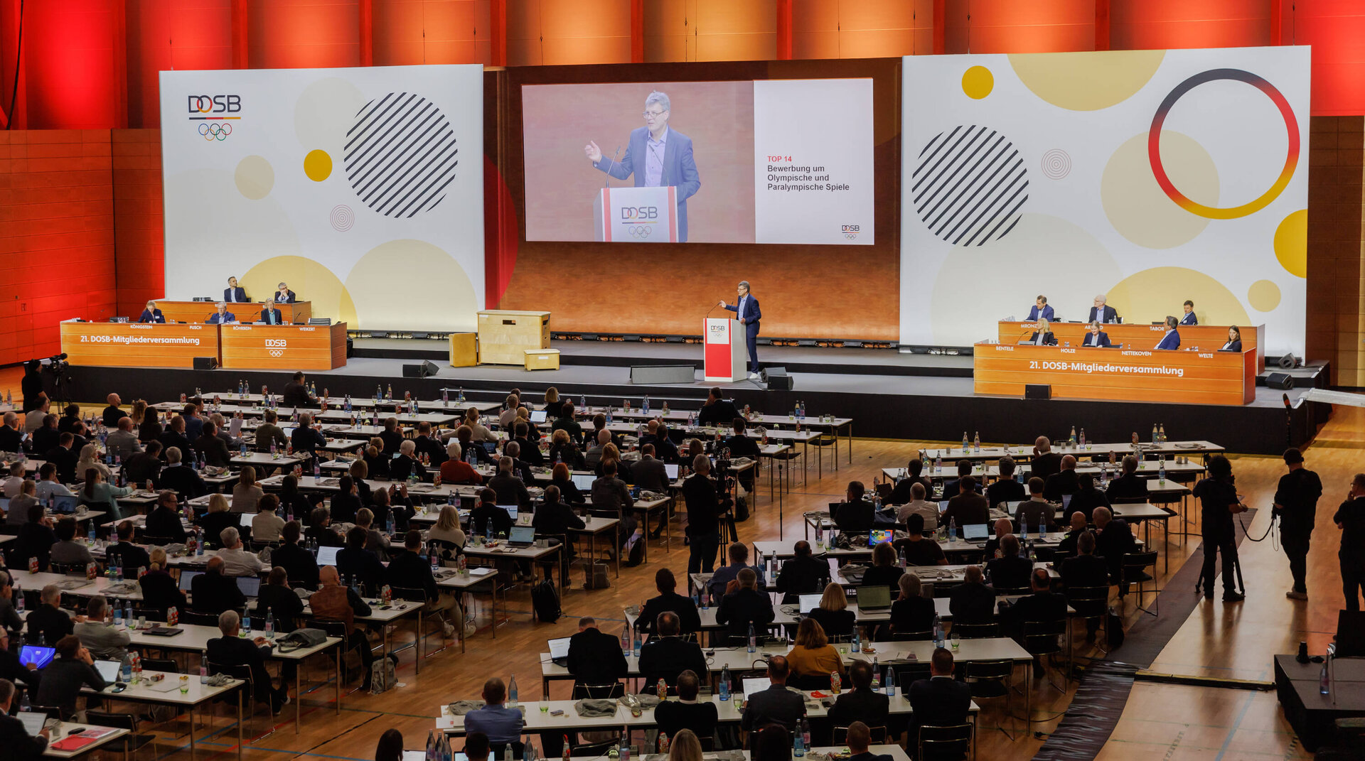Ganz wichtig: Es wird am Samstag noch nicht über den nationalen Kandidaten abgestimmt. In diesem Jahr geht es um den Entscheidungsweg und die Einsetzung einer Evaluierungskommission. Der DOSB hat hierzu in Zusammenarbeit mit den zuständigen Gremien und dem Bund eine umfangreiche Bewertungsmatrix ausgearbeitet. Diese wurde in diversen Hintergrundgesprächen mit den vier Bewerberregionen, den olympischen Fachverbänden sowie deren Athlet*innenvertretungen und ausgewählten Medien vorgestellt. Nachdem die Bewerber bis zum 4. Juni ihre finalen Konzepte und die Antworten auf einen im Februar 2026 zu verschickenden Fragebogen eingereicht haben, werden diese Einreichungen im Juni/Juli vom DOSB unter Einbindung der olympischen Verbände und Arbeitsgruppen in den fünf Kategorien internationale Wettbewerbsfähigkeit und nationale Akzeptanz, sportfachliche und operative Eignung, Vision und Legacy, Kosten und Finanzierung sowie infrastrukturelle Sonderprojekte (nicht prüfungsrelevant) evaluiert. Anschließend überprüft und bestätigt eine Evaluierungskommission, über deren Einsetzung ebenfalls am Samstag ein Beschluss gefasst werden soll, die Ergebnisse des Evaluierungsprozesses auf die Einhaltung der vereinbarten Kriterien und ihre Nachvollziehbarkeit.. Die Abstimmung über den nationalen Kandidaten erfolgt dann auf einer außerordentlichen Mitgliederversammlung am 26. September in Baden-Baden.
